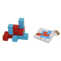 3D logical reasoning game. 30 wooden cubes of 2x2cm and two colors. Includes 57 cards with 114 building combinations.