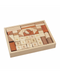 48 building blocks made with high quality woods, such as mahogany, rosewood, anton, birch, rubber tree and redwood, which gives it a very natural and a very colorful appearance.