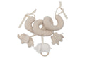 This cheerful activity spiral from the Elephant Tales collection is specially designed to stimulate your baby’s senses and support motor skill development. It features three adorable elephants, each with a unique look—one made from soft ribbed fabric, one with checkered ears, and one in luxurious velvet. The spiral offers a mix of textures and colours that spark your little one’s curiosity. Easily attach it to the handle of a Maxi-Cosi or to the playpen, so your baby always has their favourite toys within reach.
