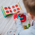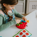 Three hungry caterpillars want to eat from the same apple. Can you bend them into shape so that they all can fit? This logic game requires fl exible thinking! The caterpillars are adjustable…and so is the apple game board!