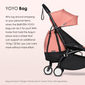 YOYO bag hooks onto the YOYO stroller in seconds and, thanks to its wheel, supports an additional 10 kg (22 lbs) without extra efforts.