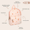 The backpack has a zip on the inside for small items and a label for name and phone number, so everyone knows who this trendy bag belongs to. This backpack is lined for better quality and longer life.