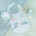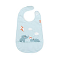 Bib in blue with playful playground design, features Velcro closure for easy fastening.