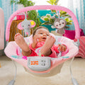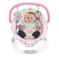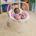 The Ingenuity Morrison Soothing Bouncer helps calm baby with its plush fabrics and bouncing motions. The adorable Morrison fashion is sure to compliment the décor of any home and is perfect for any gender. Baby can enjoy 8 melodies and relax with soothing vibrations. The seat features a cushioned foot pillow, side supports, and a removable headrest as baby grows. The toy bar offers 2 entertaining plush toys and removes with just one hand, making it easier for you access your little one. Volume controls and automatic shut-off allow you to set how long music plays. When things get a little messy, simply toss the seat pad in the washing machine. A 3-point harness and non-skid feet help keep baby secure.