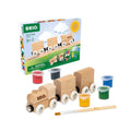 Unleash your child's inner artist with the BRIO Paint Train – a unique, hands-on addition to the BRIO World! This wooden train set is a blank canvas just waiting for your little one’s imagination to shine. With a paintbrush and 5 safe, water-based acrylic paints included, kids can create their own custom train design. Want to try a new style? Just wait for the paint to dry and start again.