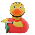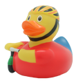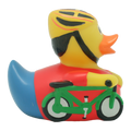 This duck travels by bike! As a real role model it is naturally wearing a sporty helmet on the road. Like this, it always arrives safely and without CO2-emissions.