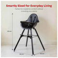 - Height of seat at height of eating table: 59cm. Height of footrest at height of eating table: 42cm.