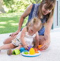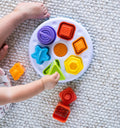 Early shape learning fits perfectly into place, again and again! Fit the large hollow shapes into their matching slots. Fit the squishy silicone plugs into their matching hollow shapes. Or, fit the plugs right over the shapes sticking out of the base. Each shape in the base has a unique texture design and each plug has a handle to match. It's all the fun of lids and containers but with a unique twist of tactile fascination!