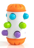 BABY SENSORY TOY: Roll into wonder with Rolio from Fat Brain Toys. This delightful sensory toy for plus 6 month old babies has colourful and uniquely textured pegs that move in and out while the cylindrical toy rolls smoothly and quietly on soft silicone tires.