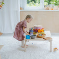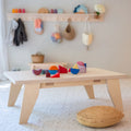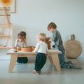 NOZOMI is Japanese and means hope. Our NOZOMI table is especially well-suited to be placed in the center of a children's room, where it can be easily accessed from all four sides. Its tabletop is particularly thicker, and its legs are designed with a minimalist aesthetic. With its dimensions, the table provides plenty of space around it for movement. In such a setting, NOZOMI is likely to rarely stand empty, with the most beautiful play landscapes spreading across it. Multiple children can play together on the table or sit on the floor besides each other. It is crafted from sustainable birch plywood and is handmade in Europe by our skilled carpenters.