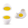 •Includes three hard-boiled and three fried eggs whose shells come off
