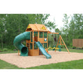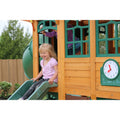 Kids will love exploring the two-story clubhouse, complete with a wooden roof, decorative dormer, working door, and windows that bring a realistic playhouse feel. The upper level can be reached through a colorful rock-climbing wall, leading to two exciting slides a high-rail wave slide and a 12-foot enclosed Twist N’ Ride tube slide for thrilling rides down.