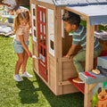 With a paddle to transport the play pizza slices in and out of the oven, the whole experience is as realistic as can be. Hooks for utensils are nearby for handy use. There's even a BBQ grill with the classic outdoor menu of play food: hot dogs, hamburgers, lettuce, tomato, cheese, mustard and ketchup. Cook it up to order and serve on the plates to your family. Inside is a sink and burner for even more fun role play. Continue the party atmosphere with some games! A whiteboard is built into the back of the playhouse and showcases mazes, tic-tac-toe and dots for all skill levels so you can play with friends or family (markers are included). With a ringing doorbell, a play food accessory pack and cheerful graphics, this wooden playhouse is the place to host multiple backyard bashes all year long.
