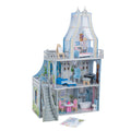 Fantasies come to life for 12-inch dolls in the Magical Dreams Castle Dollhouse from KidKraft! Full of dreamy details, this dollhouse has a grand staircase that leads up to a garden patio. Fully furnished with 16 pieces of furniture and accessories, this house is ready for royal celebrations—there's even a tiered party cake! Kids can get more hands-on in the palace with interactive components—cabinet doors open and close, piano and toilet make sounds, chandelier lights up, and there's even a post-in note easel for impromptu artwork. A sheet of stickers lets castle decorators adorn the walls with majestic accents. Peel them off and use again and again in different spots. Beautiful twin balconies, a fabric canopy roof and grand shapes make this dollhouse perfect for princess make believe stories to come true.