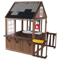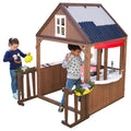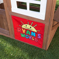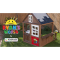 Built from the imagination of a child, the Ryan's World™ Playhouse by KidKraft combines the durability and quality of our wooden outdoor products with the energy and creativity of YouTube sensation Ryan Kaji. The aesthetics of the playhouse are inspired by how a child would build a playhouse if they could—notice the patchwork roof, angled window panes, and haphazard boards. The look is intentional and nostalgic, harking simpler times of play. The half-door gives it a true clubhouse appeal. Of course, the other fun way to enter the house is through the "doggy" door—made to accommodate pets or kids. Inside, make the house your own with a built-in mini kitchen area, complete with utensils for cooking up slime, mud pies or other pretend food. An open area with a shelf is ideal for serving the "food" or putting on a show with toys. The fenced backyard gives additional space for creating your own games and fun. Discover the wonder of outdoor play with the Ryan's World Playhouse!