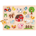 - Peg puzzle includes cow, pig, duck, chicken, sheep, horse, a cat, a tractor, barn and more (20pcs)
