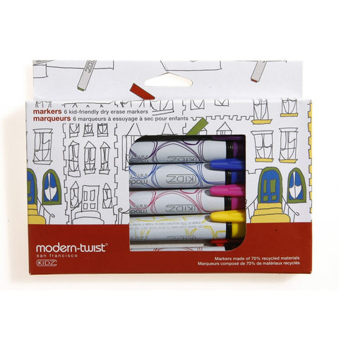 Made with 70% recycled materials, our non-toxic dry-erase markers are perfect for doodling away at meal times or on-the-go. Wipe clean again & again for endless entertainment! CARE: Our unique, non-toxic formula...