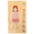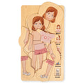 What do we look like? I mean, right under our skin. Learn more about the structure of boys' and girls' bodies and what we look like with this MAMAMEMO puzzle. The puzzle has five layers. The top layer shows a boy/girl in clothes; the second layer shows the boy/girl without clothes; the third layer shows the muscles under the skin; the fourth layer shows the internal organs; and the final layer shows the skeleton. On the back of each piece is a number, making it clear which pieces belong to which layers. It is an excellent puzzle for learning. The child can either play with the puzzle alone or with an adult, who can tell them all about the different parts of the body and their functions. Our wooden toys are specially made to provide entertainment and improve learning. All our toys comply with European regulations for toy safety and are CE marked.