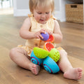 Encourages sensory exploration, tactile learning, fine motor skills, object permanence, spatial reasoning.