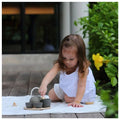 The set includes 2 place settings, a tea pot, tea bowl, 2 tea cups, and a tray. Made from sustainable rubber wood and finished with non-toxic vegetable dyes, it is safe for little hands and kind to the environment.