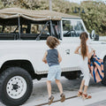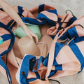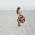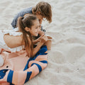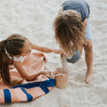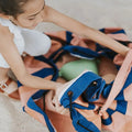 The Play&Go Mokka Stripes Outdoor Bag is the perfect companion for families who love spending time outside. With its classic tricolored design in peach, tan, and navy blue, this waterproof playmat doubles as a chic storage bag that blends beautifully indoors or out.