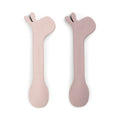 A set of two silicone spoons in powder color, featuring Lalee designs. Soft tips for gentle feeding, with ergonomic handles for easy grip. Made from food-safe materials.