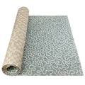 Reminiscent of a checked blanket, the textural Holbein playmat utilises a subdued palette of stone and bleached sand shades. On the reverse, the meandering pattern of The Pembroke is captured in blue slate and chalky tones.